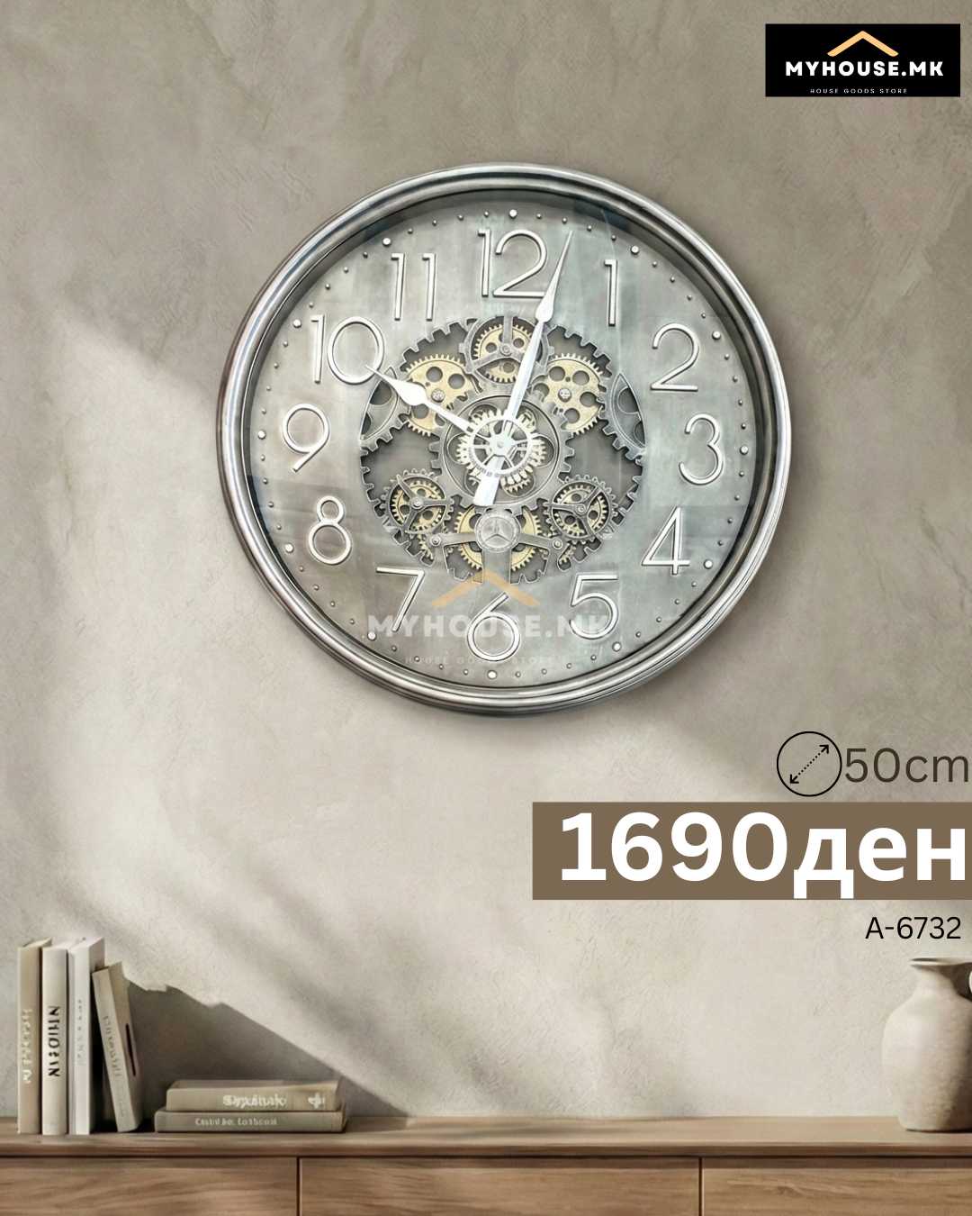 Додадете модерен и луксузен акцент во вашиот дом со овој уникатен ѕиден часовник со видливи запчаници (gear style).