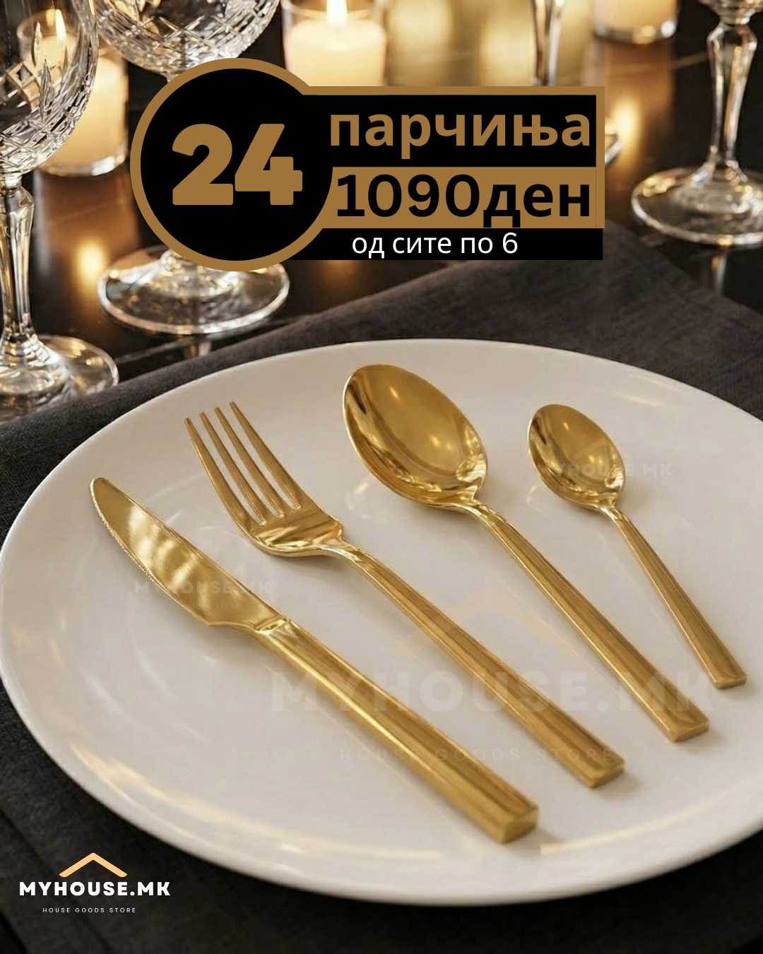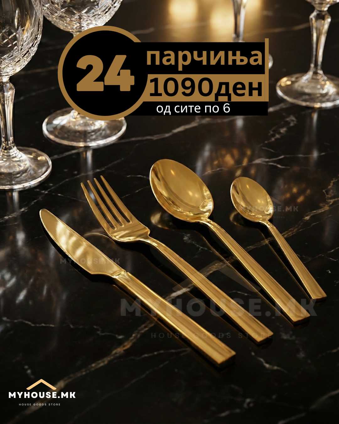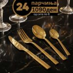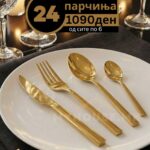 🍴 Луксузен златен прибор за јадење – 24 парчиња сет