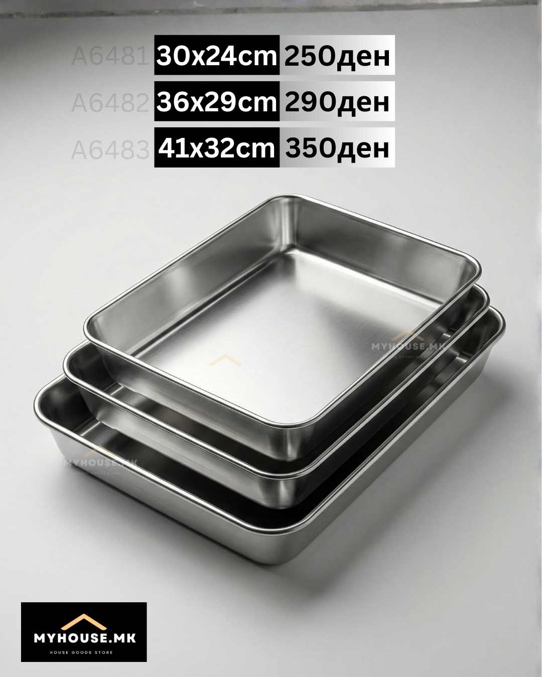 Практични и издржливи ростфрај (нерѓосувачки челик / inox) тави за печење, совршени за секоја кујна.