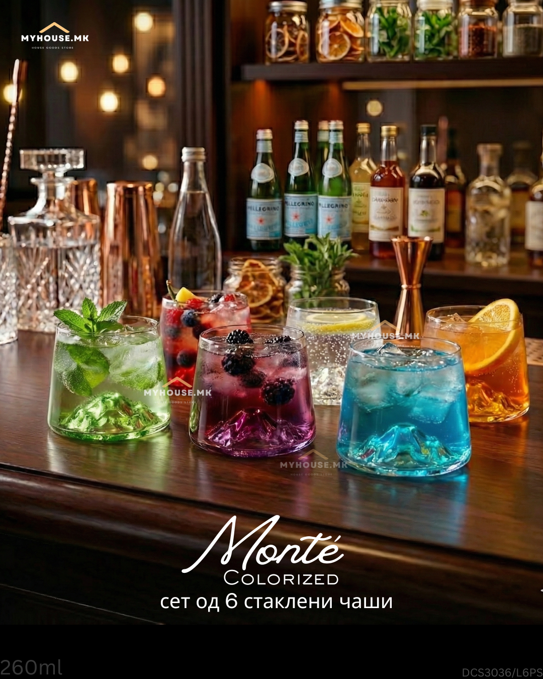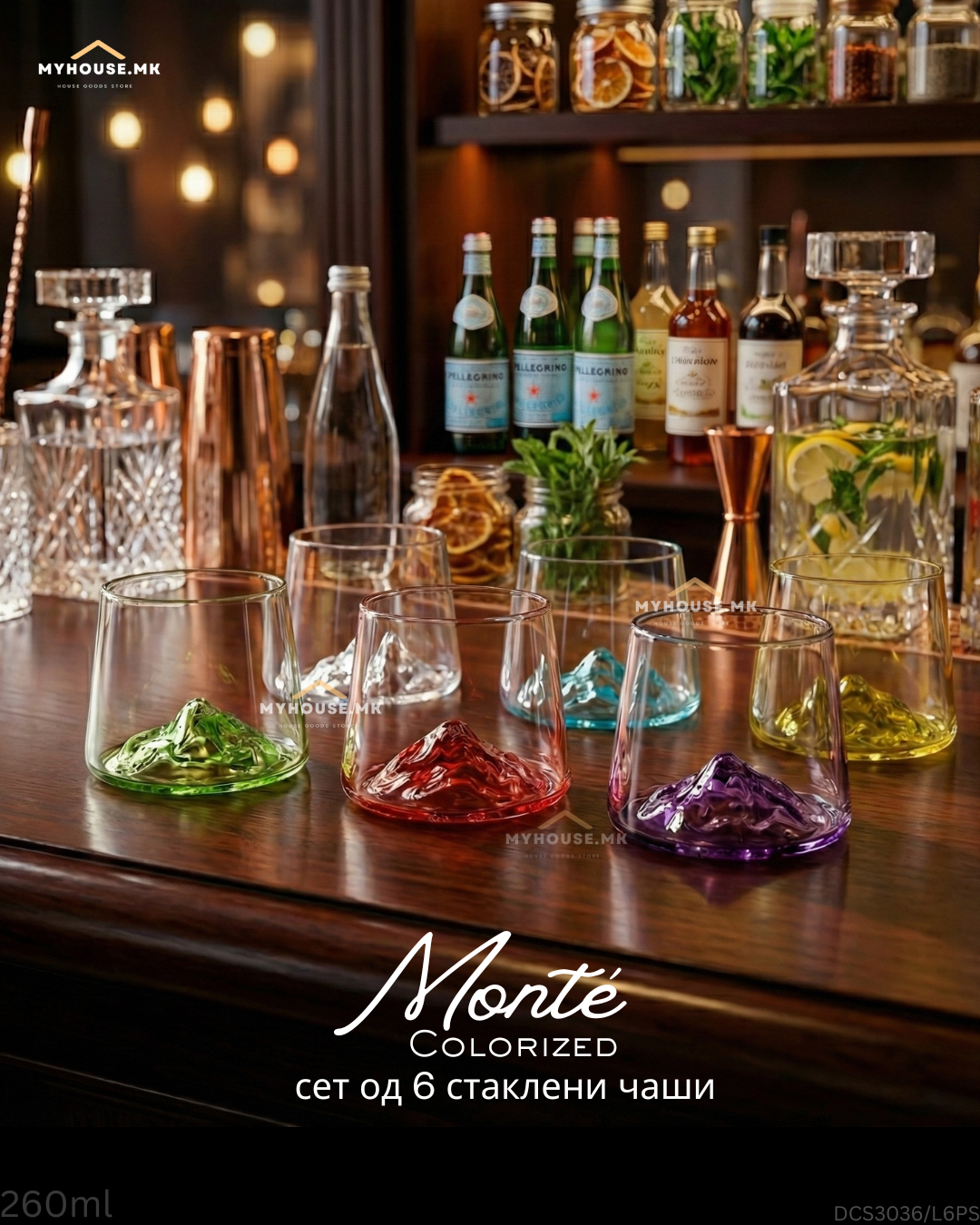 Овој модерен сет содржи 6 чаши со различни бои на дното: